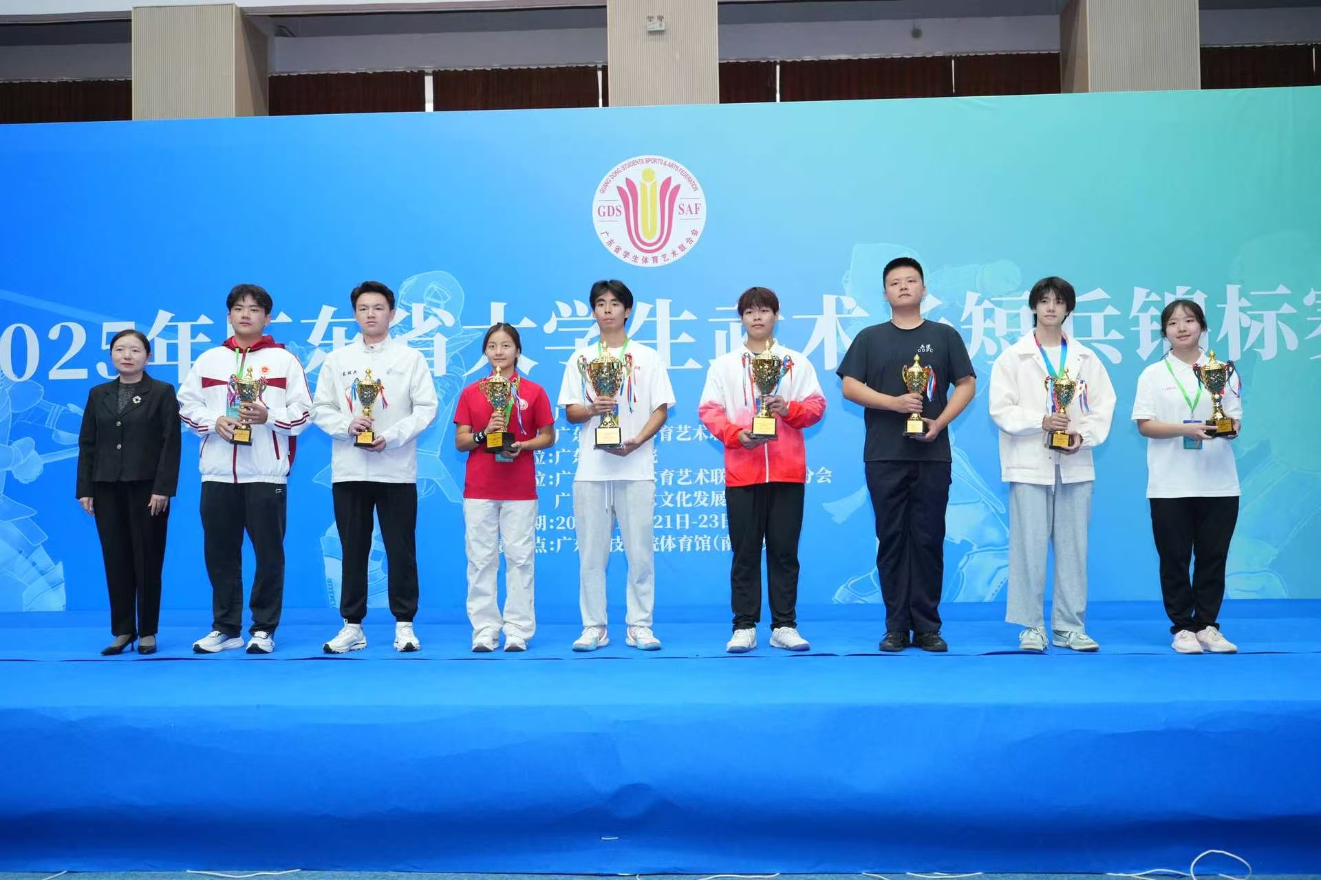 本次赛事由广东省教育厅指导、广东省学生体育艺术联合会主办,吸引了全省40所高校的461名运动员同台竞技,设有甲组、乙A组、丙组三个组别,涵盖男女各8个公斤级别,共开展300余场专业对抗赛,是该赛事创办以来规模最大、参赛人数最多、竞争最激烈的一届。广州航海学院武术长短兵队在教练阙永伟、领队姚凌紫两位老师的带领下,出征甲组赛事,面对强劲对手,队员们沉着应战、奋勇拼搏,最终脱颖而出,荣获佳绩。