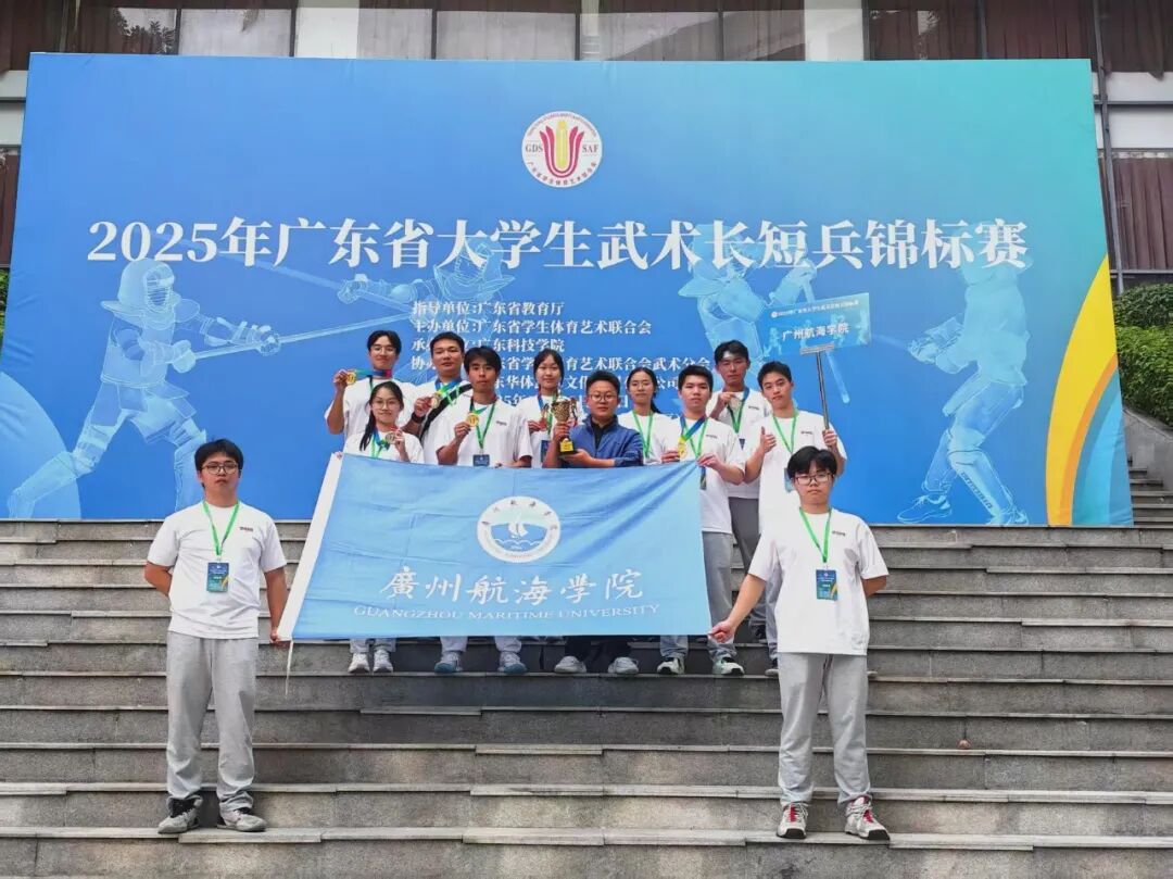 11月21日至23日,2025年广东省大学生武术长短兵锦标赛在东莞广东科技学院成功举办。广州航海学院武术长短兵队选派11名运动员参赛,经过激烈角逐,荣获团体总分一等奖,同时,在单项比赛中斩获3金2银2铜及1个第五名,充分展现了广航院学子精湛的武术技艺与昂扬向上的精神风貌。
