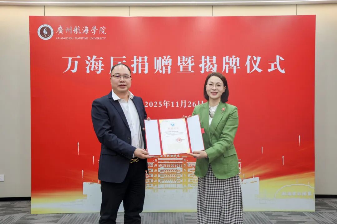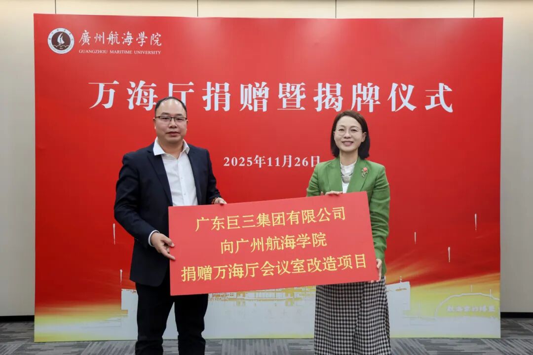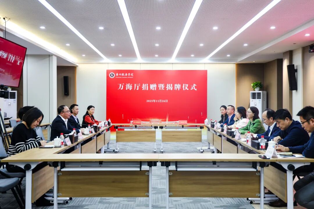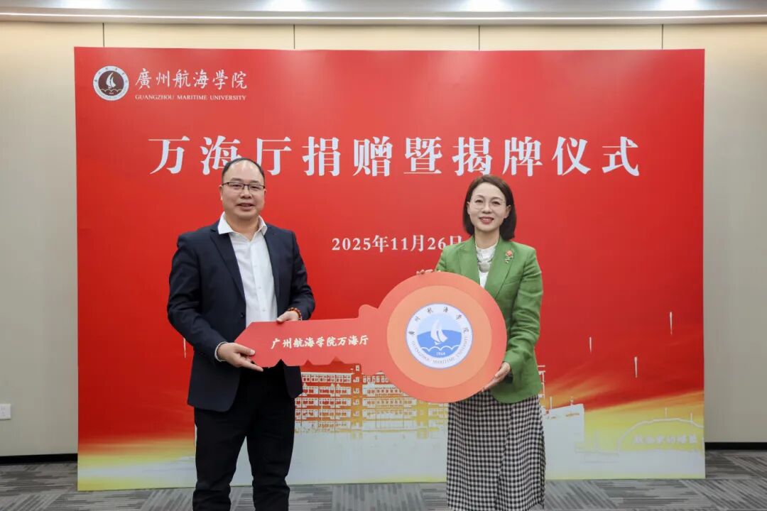 冬阳沐校园,情谊暖人心。11月26日,广州航海学院万海厅捐赠暨揭牌仪式在黄埔校区隆重举行。广航院党委书记陶韶菁,广东巨三集团有限公司副总裁、学校95级工业与民用建筑专业校友卢任贵、广州市林鼎装饰工程有限公司总经理、学校96级建筑装饰专业校友万桂林出席仪式,校党委副书记胡命杰主持仪式。
