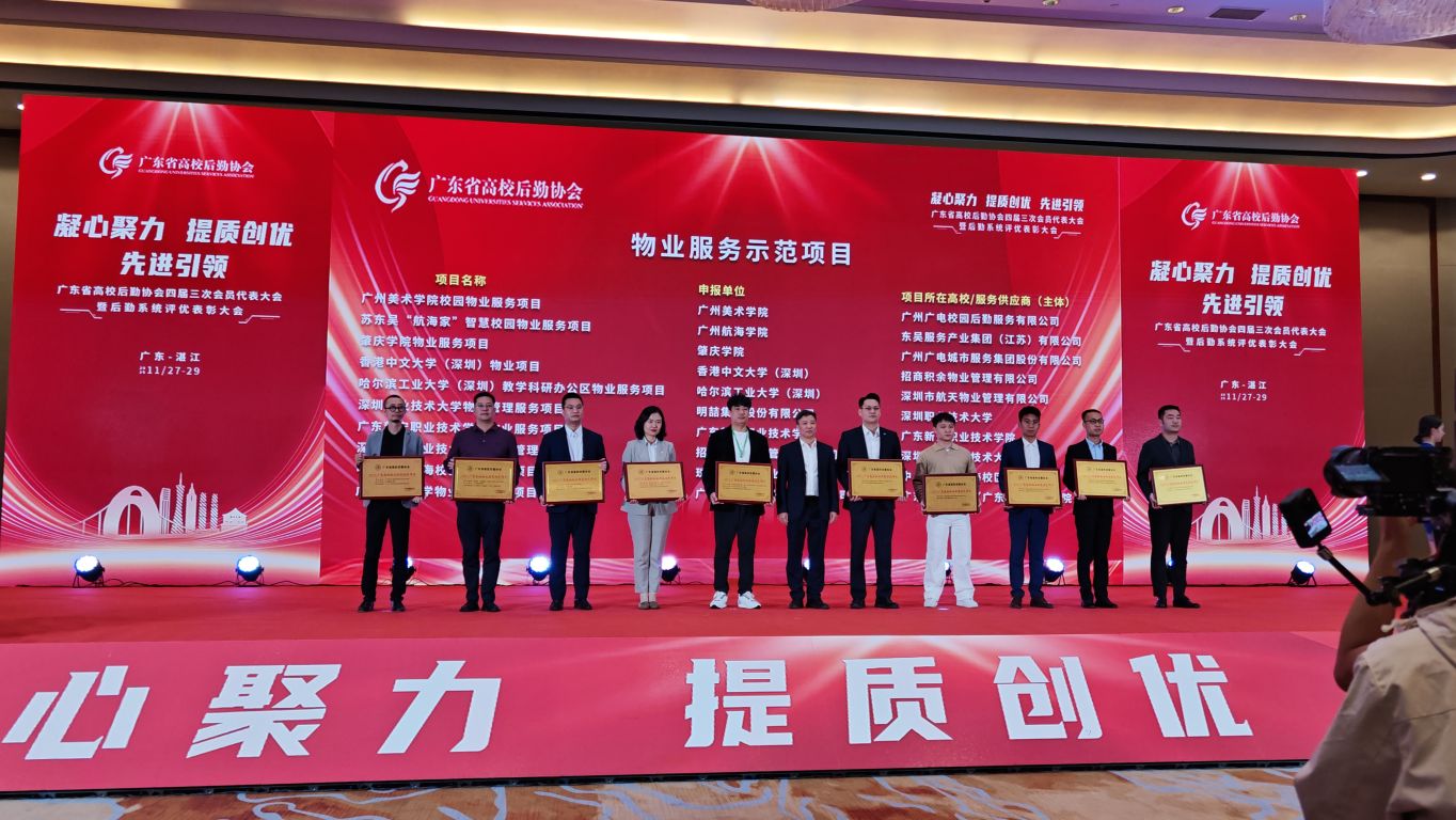 11月27日至29日,广东省高校后勤协会四届三次会员代表大会暨后勤系统评优表彰大会在湛江市召开。广州航海学院物业服务项目表现卓越,成功获评“2025广东高校物业服务示范项目”。