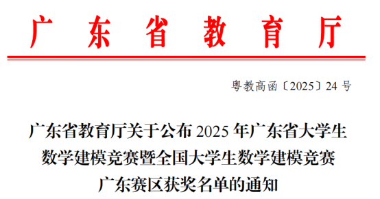 近日,2025年“高教社杯”全国大学生数学建模竞赛成绩揭晓。广州航海学院25支参赛队伍获省级一等奖2项,二等奖3项,三等奖4项,优胜奖7项。
