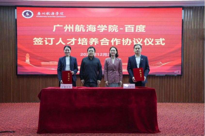 12月22日,广州航海学院与百度公司人才培养合作协议签署暨“百度松果AI人才实习实训基地”和“码蹄杯编程实训基地”启动仪式在学校志海厅举行。学校党委书记陶韶菁,百度高校合作部总监李轩涯、副总监计湘婷、高级经理房暖东和“码蹄杯”大赛主席、吉林大学黄岚教授共同出席了会议。学校副校长陈建平主持会议。
