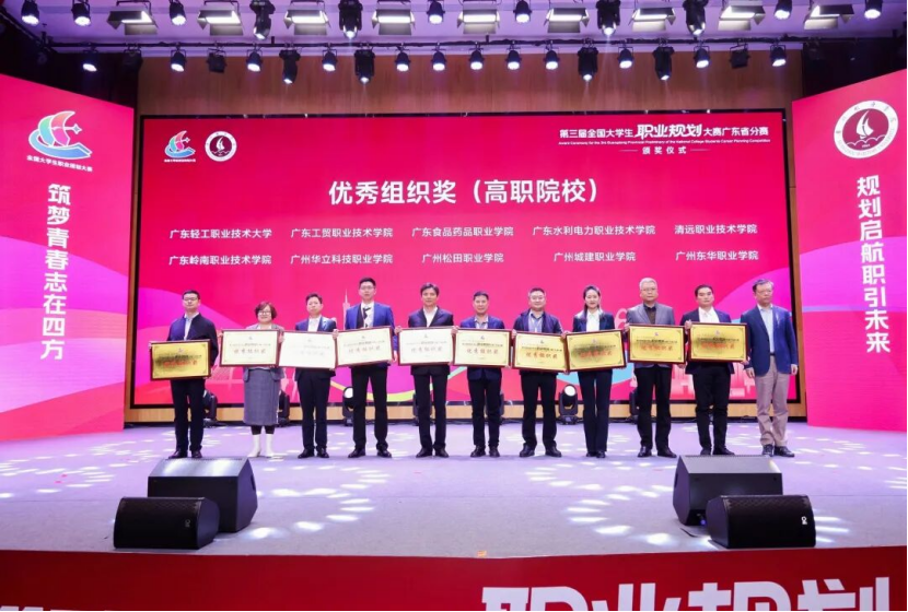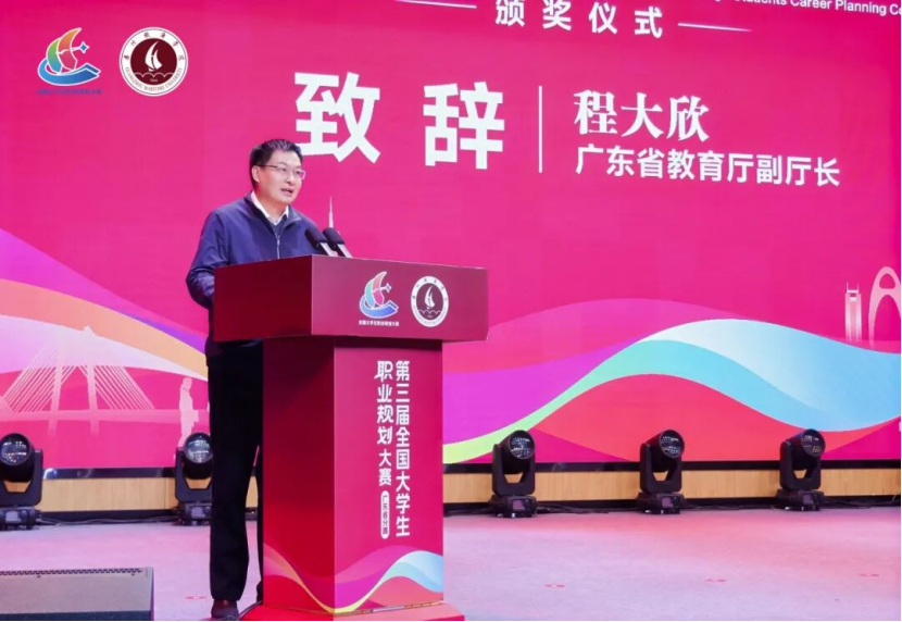 颁奖仪式上,广州航海学院党委书记陶韶菁、教育部学生服务与素质发展中心生涯发展教育处处长杨洪涛、广东省教育厅副厅长程大欣致辞,对大赛的成功举办表示祝贺,对参赛师生的积极参与和辛勤付出给予肯定,并对青年学子的职业发展寄予殷切期望。