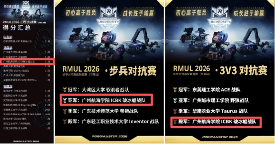 近日,第二十五届全国大学生机器人大赛RoboMaster 2026机甲大师高校联盟赛(华南站)在北京理工大学(珠海)圆满落幕。广州航海学院ICBK破冰船战队斩获步兵对抗赛亚军、3V3对抗赛殿军、工程挑战赛一等奖,充分展现了广航院学子在机器人竞技领域的实力与风采。