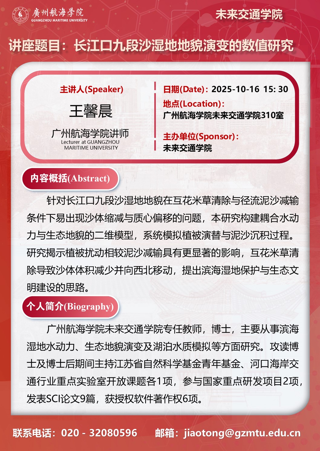 学术讲座预告:王馨晨《长江口九段沙湿地地貌演变的数值研究》
