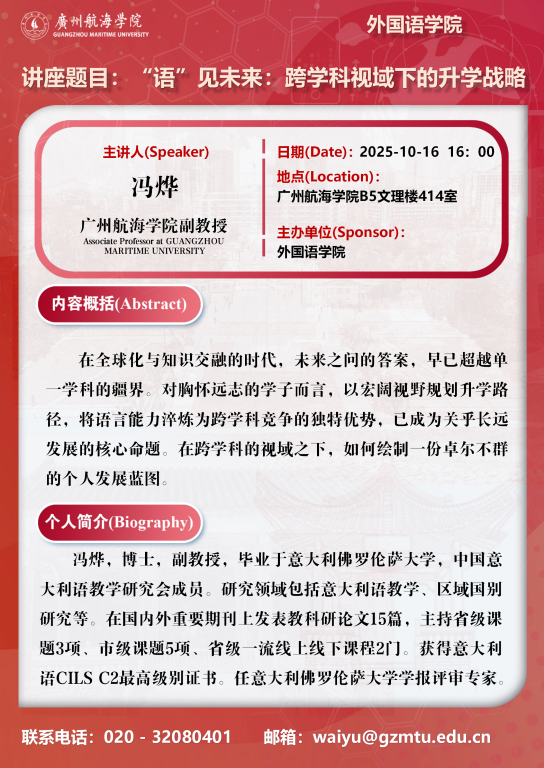 学术讲座预告:冯烨《“语”见未来:跨学科视域下的升学战略》