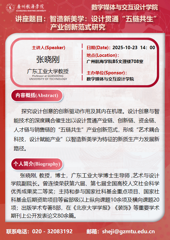 学术讲座预告:张晓刚《智造新美学:设计贯通“五链共生”产业创新范式研究》