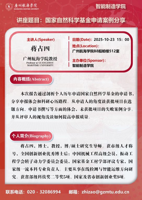 学术讲座预告:蒋占四《国家自然科学基金申请案例分享》