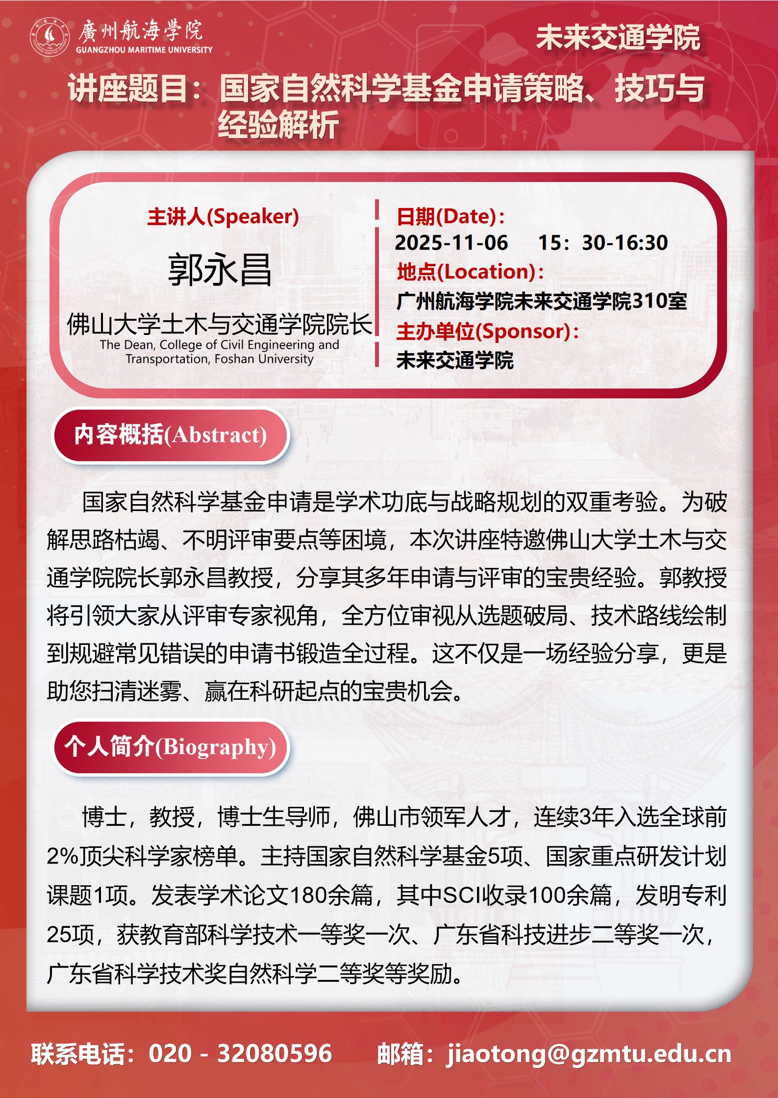 学术讲座预告:郭永昌《国家自然科学基金申请策略、技巧与经验解析》