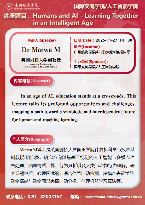 学术讲座预告:Marwa M《 Humans and AI – Learning Together in an Intelligent Age》