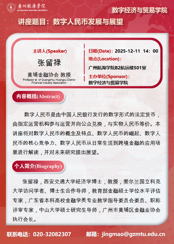 学术讲座预告:张留禄《数字人民币发展与展望》