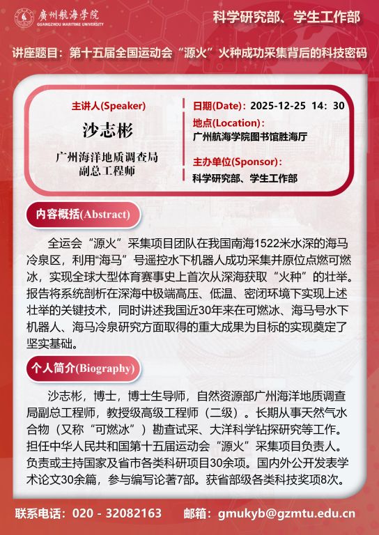 学术讲座预告:沙志彬《第十五届全国运动会“源火”火种成功采集背后的科技密码》